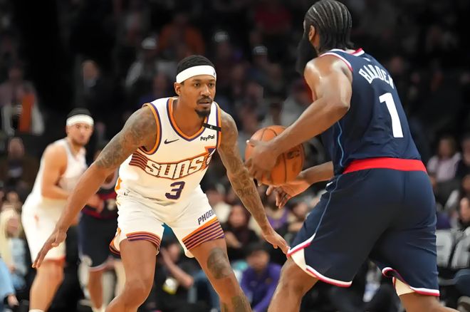 听起来似乎稳定,但细究来看,背后似乎存在一些莫名紧张;快船的阵容表面看似风光,但内部却隐含着不少问题。即便抛开伦纳德的合同风波,从比尔的视角看,他真的适合首发体系吗?