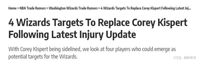 当然就算实力不济,或者说无缘季后赛,场面也不能太难看,否则球迷那无法交差,可是直接影响收益的。奇才作为东部鱼腩,除了自身实力一般,也跟伤病比较多有关,尤其外线射手基斯珀特手指骨折,也让他们雪上加霜,奇才急需提升外线火力。