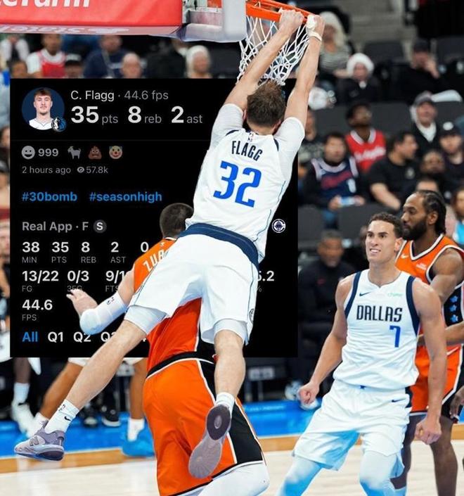 弗拉格在与湖人队的比赛中,虽说只拿到了13分,却送出了11次助攻的数据,成为了历史至今最年轻单场送出10+次助攻的球员,此役,背靠背面对快船队,弗拉格高效砍下了35分,成为了历史第二年轻单场35+得分的球员。