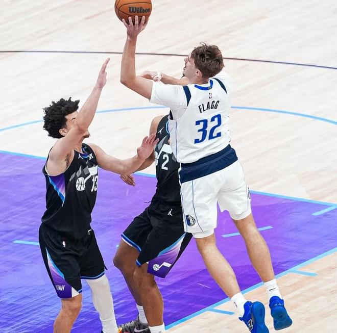弗拉格与东契奇一样,是“少年老成”的代表,赛季至今的他,场均内线得分达10.5分(联盟第20位),内线投篮命中率59.1%,内线得分排在他前面的前锋球员,就杰伦-约翰逊(新鹰王),西亚卡姆(全明星),还有巴恩斯(全明星)三人,但是,命中率都没有弗拉格高。
